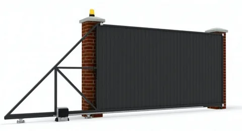 - Консольные откатные ворота: Самый распространенный тип откатных ворот. Полотно ворот крепится к консольной балке, которая перемещается по роликовым опорам, установленным на фундаменте сбоку от проема.